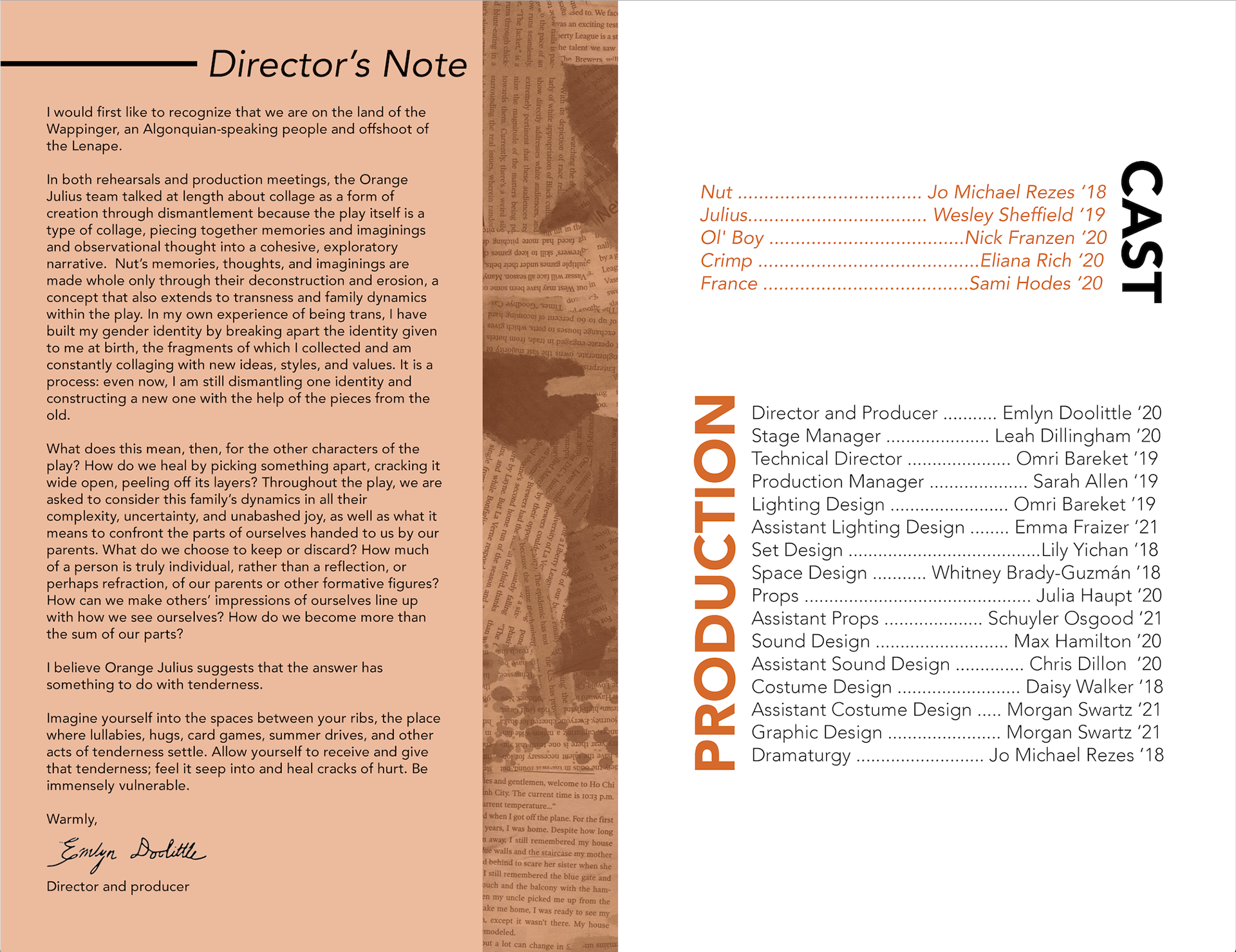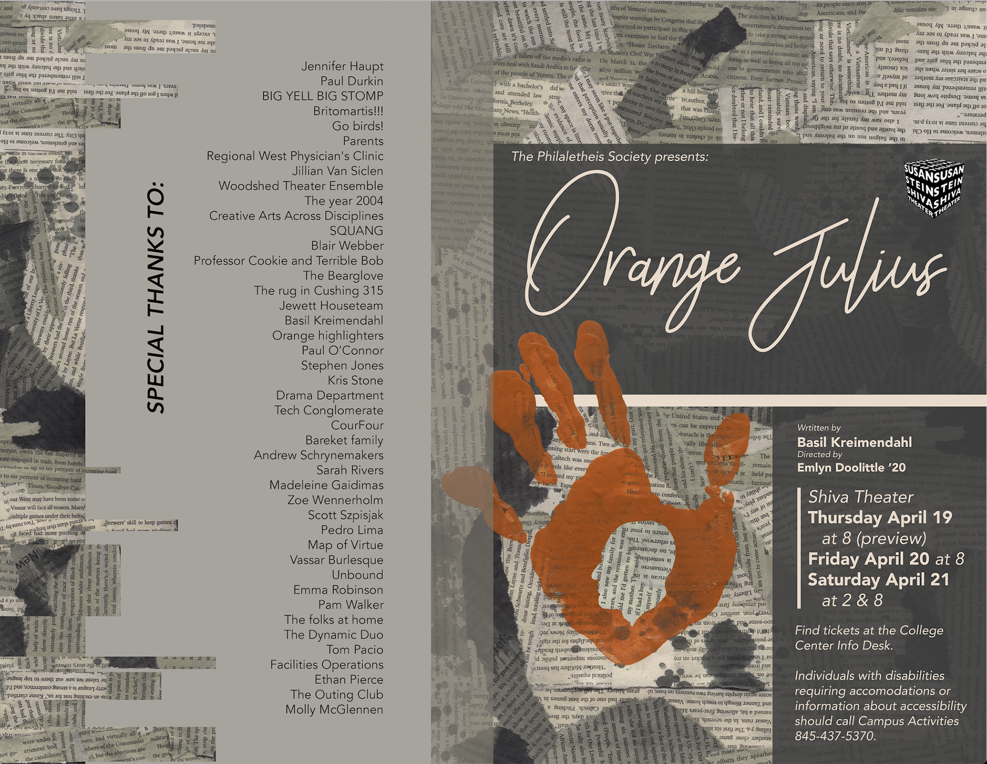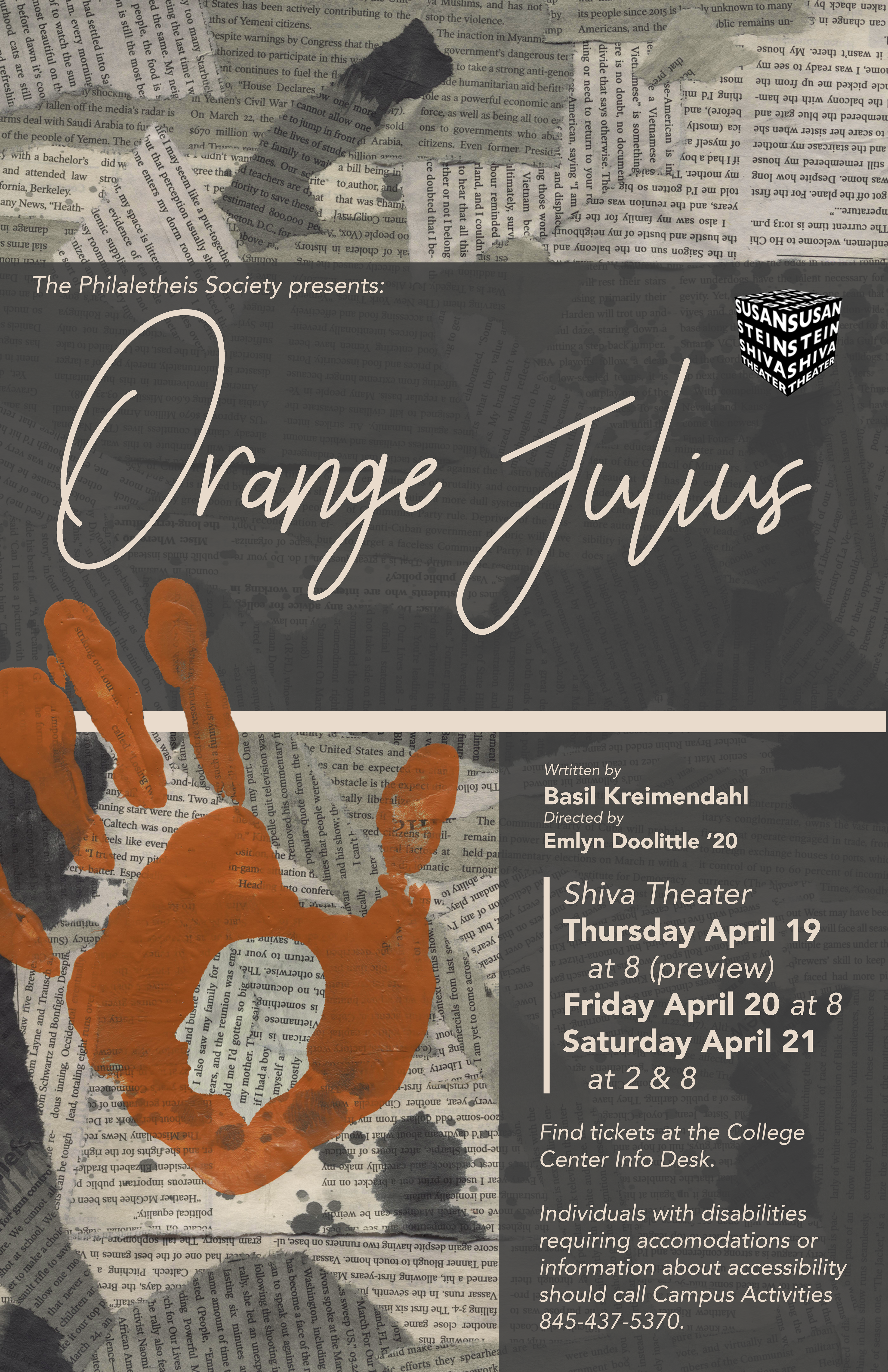 This poster and program were made for a student production of Orange Julius at Vassar in 2018.